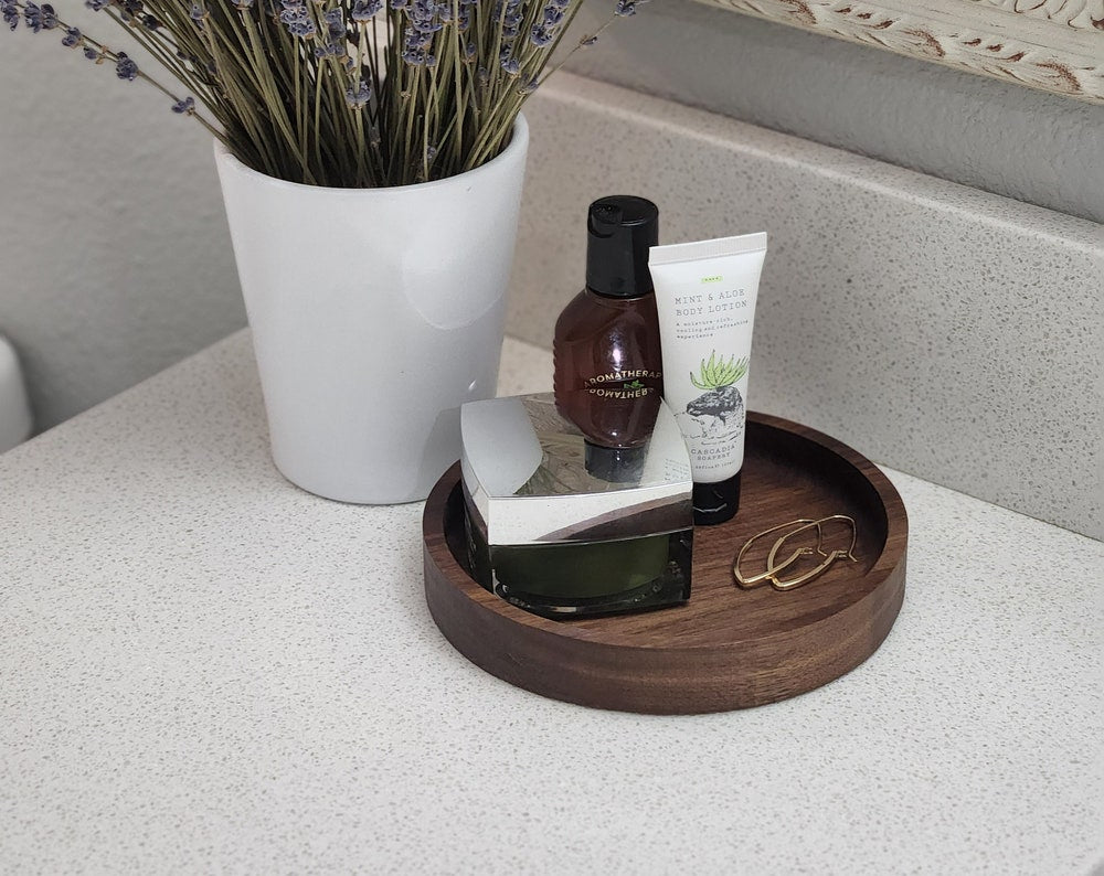 Walnut Catch All Tray | Round Valet Tray | Decorative Wood Tray