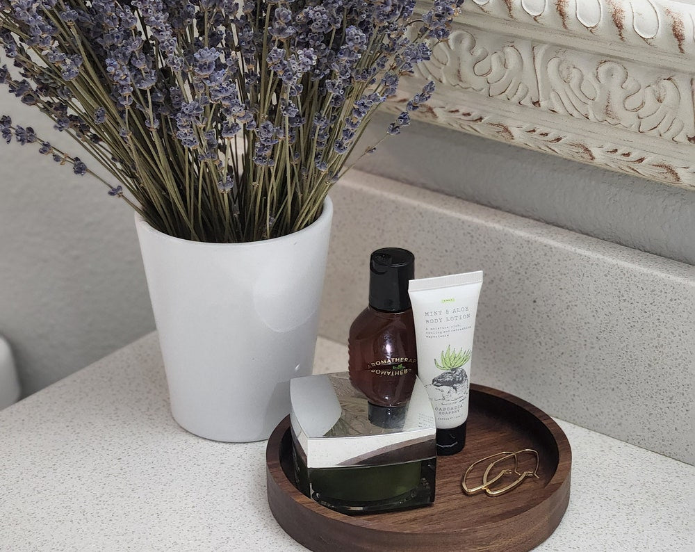 Walnut Catch All Tray | Round Valet Tray | Decorative Wood Tray